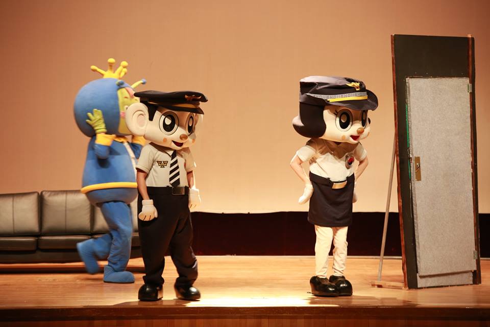 ソウル地方警察庁にはポドリ(男の子)とポスニ(女の子)というキャラクターがいるのだが、舞台の上でぬいぐるみのポスニの中に入っていたのは、なんとチャンミンであった。ぬいぐるみを脱いでチャンミンが現れたら、みんなビックリだろう。