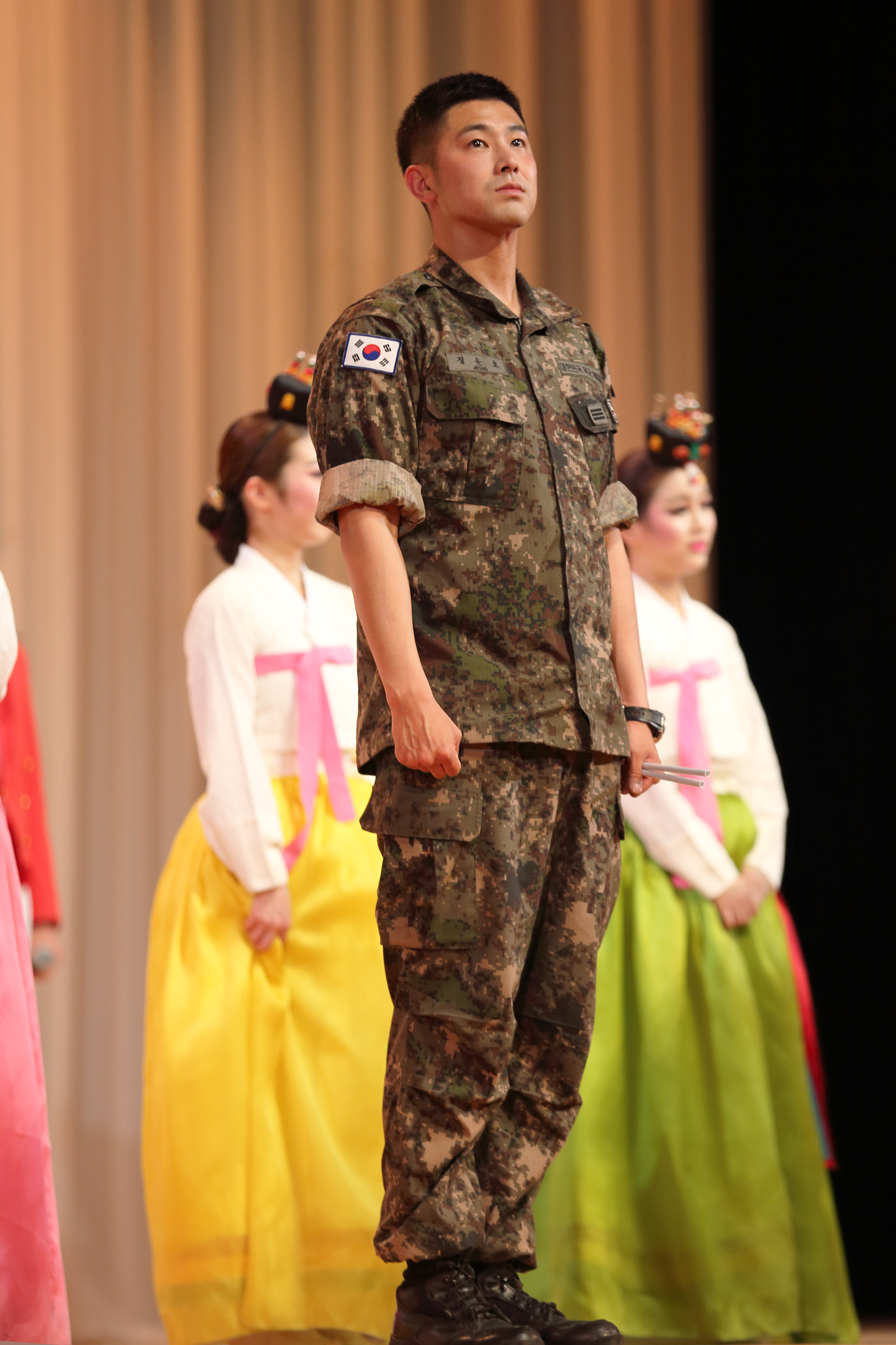 韓国の伝統的で華やかな舞踊や曲芸が繰り広げられていると、そこにユンホたちも登場した。