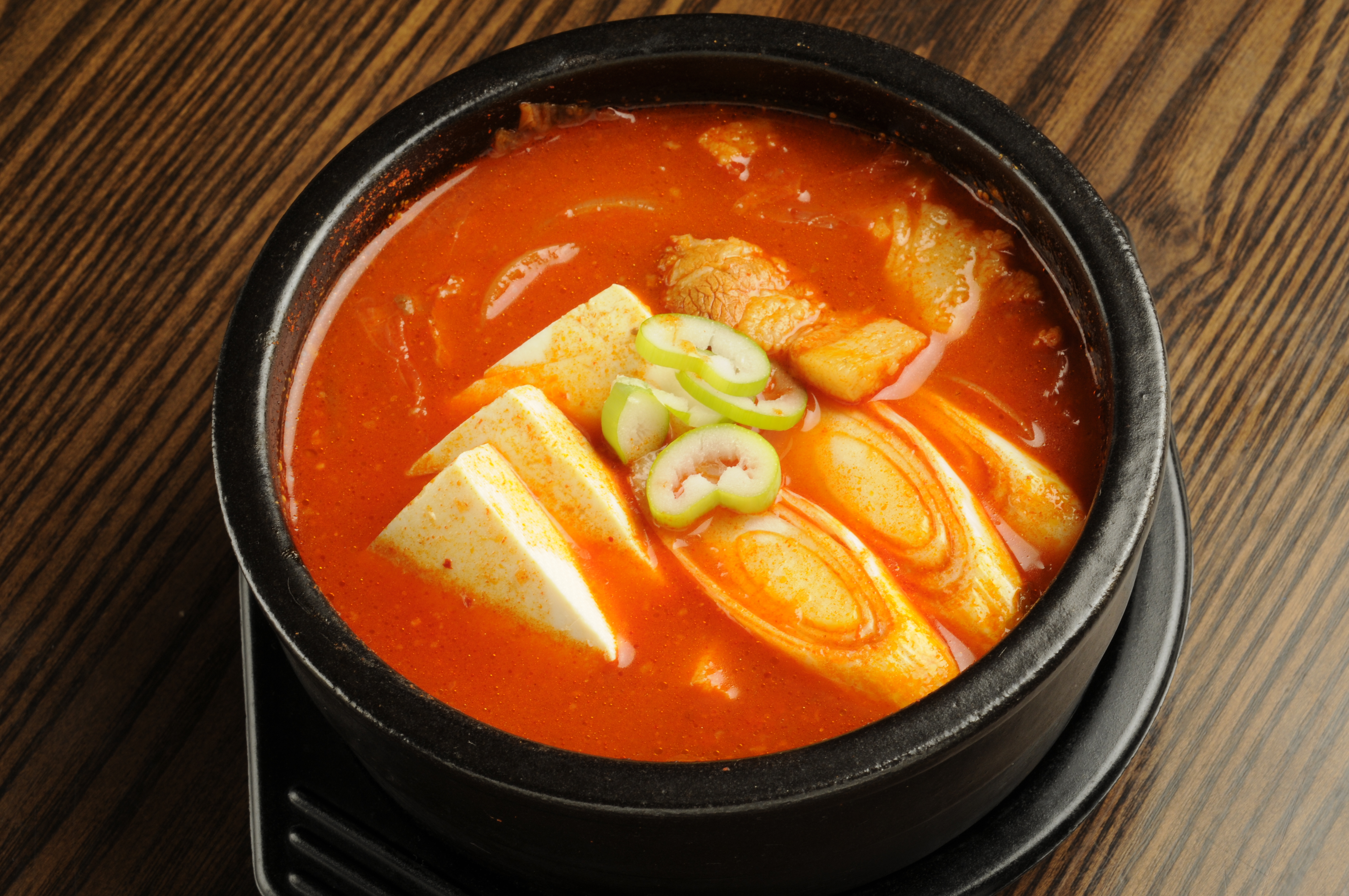 キムチチゲは、鍋料理のトップを争うほどの人気メニュー。ほどよい辛さが絶妙な旨さを醸し出し、美味しく内面からポカポカになれる。そして、低カロリーであり健康的にも良いのだから、トップランキングなのも納得ができる。