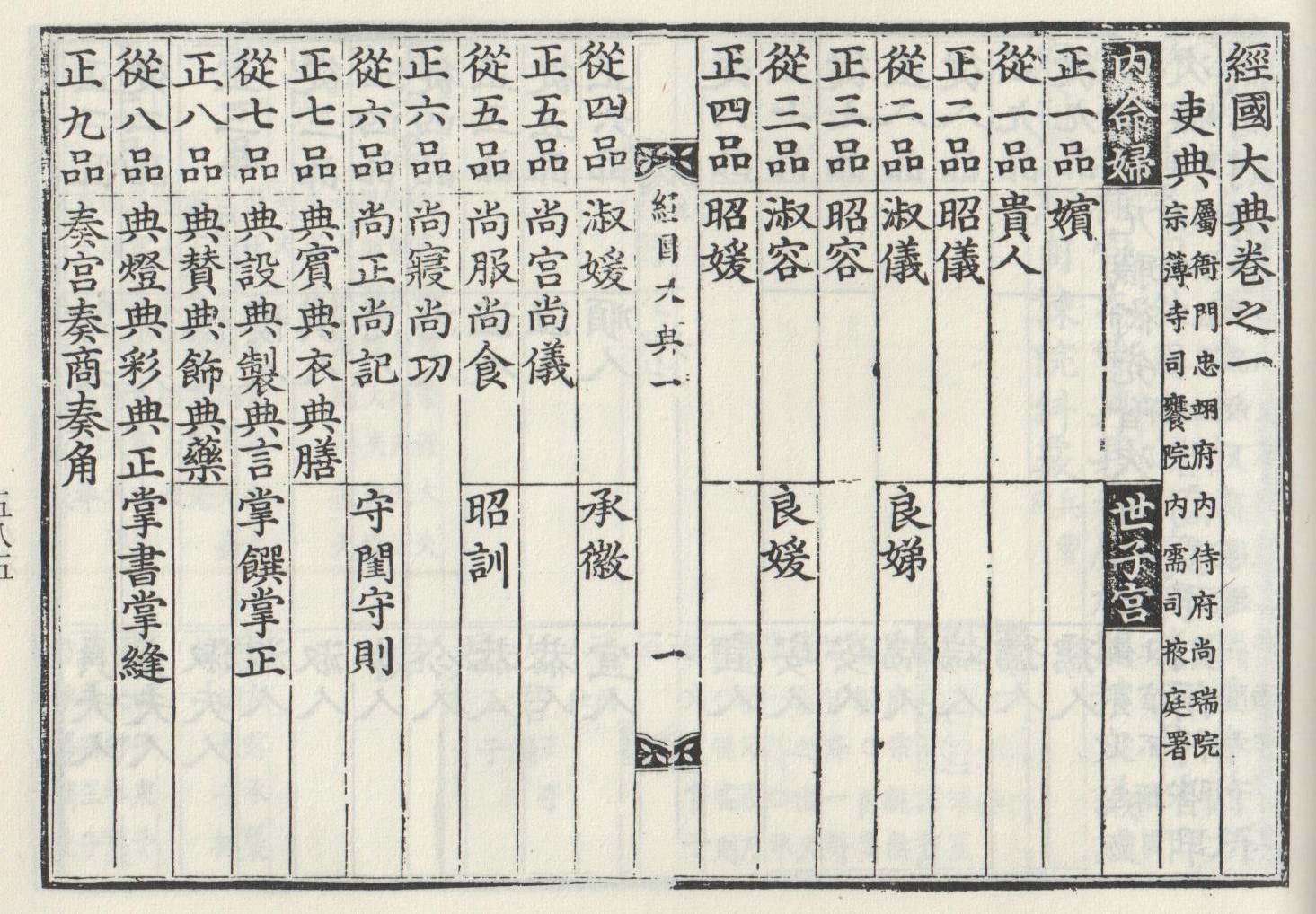 たとえば、「吏典」を見ると、最初に内命婦(ネミョンブ/王宮に奉職する女性の中で品階を持っている人)の品階が記されている。