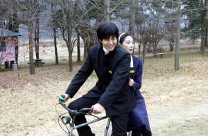 そういえば『冬のソナタ』でも、高校生時代のチュンサンとユジンが自転車の2人乗りをしていました。