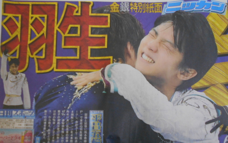 韓国を代表する通信社の『聯合ニュース』は、羽生結弦の記事を一面トップで大々的に報道している全国紙をたくさん集めた写真を載せて、日本がいかに羽生結弦の快挙に熱狂しているかを視覚的に伝えた。
