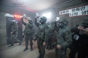 化学ガス訓練を行なう新兵たち(写真=韓国陸軍公式サイトより)