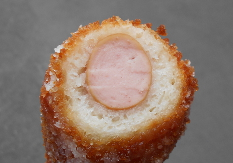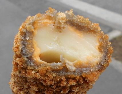 こちらは、ソーセージが入っていない。チェダーチーズとモッツァレラチーズの組み合わせで中身ができている。食べているとチーズが伸びるので、見た目にも面白い。