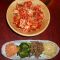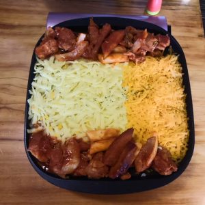 それで、お店に入ってチーズタッカルビを注文すると、準備ができ次第鉄板が運ばれてくる。この時点で、もうすでにタッカルビのほうは出来上がっている。