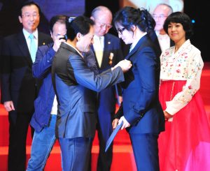 この花冠といえば、2008年にペ・ヨンジュンが受章している。彼も韓流ブームの立役者で、韓国の大衆文化を世界に広めた功労者であった。
