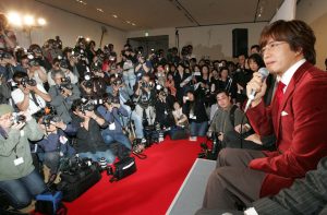 ファンの転倒事故が起こり謝罪会見を開いたペ・ヨンジュン