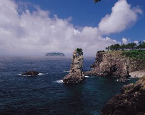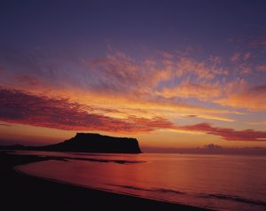 済州島の東端にある城山日出峰(ソンサンイルチュルボン)は台形の噴火口です。