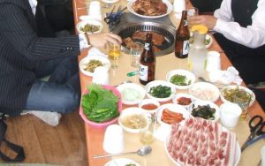 すっかり夕刻になり、会社帰りの御一行様たちも続々とご来店。皆、焼酎片手につまみを頬張っている。そのうち、隣合わせた会社帰りの御一行様とも意気投合。日本からの観光客ということが珍しかったのか彼らとの会話も弾む。彼女たちは韓国語を話せない。しかし、持ち前のコミュニケーション能力と英語力で楽しい交流を持てたという。