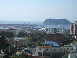 ただし、飛行機はやめて、船、バス、鉄道を乗り継いでソウルに行くことにした。ひとっ飛びで目的地、というのが時間の最大有効活用法であることは確かだが、それは多忙で1日が25時間あればよいと願う人たちの話。私は普通に1日が24時間でいいと考えているし、今そこに緊急の用件を抱えているわけでもないので、風景をのんびり見ていられる速度で北をめざすことにした。