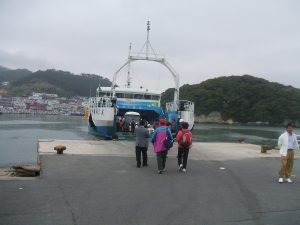 莞島(ワンド)から青山島(チョンサンド)に行く船は小さなフェリーだった。済州島から乗ってきたフェリーと比べたら、マグロとイワシほどの違いがあった。それでも、甲板の中央には大きな部屋があって、その座敷で大勢の乗客がそれぞれにくつろいでいた。