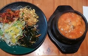 さらに、海鮮スンドゥブチゲと一緒にテンコ盛りの野菜をいただく。この組み合わせは最強。まさに、栄養が100点満点だ。