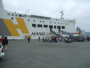 デッキの端に立ち、フェリーが接岸する様子をずっと見ていた。いきなり、「パーン」という凄まじい衝撃音が起こり、船を繋ぎとめておくためのロープが、フェリーから岸に向かって打ち放たれた。そのとき、本当にヒヤリとした。