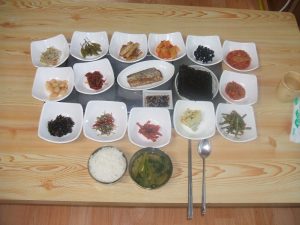 黙って待っていたら、意表をつかれた。たった1人なのに、食卓には20品ものおかずが次々と並ぶ。端から順に言うと、生ニンニクの漬物、海苔、海草のあえもの、小さい唐辛子、キムチ、カクテキ、塩辛三皿、もやし、小魚、干し大根の漬物、ニンニクの芽、さつまあげ、ハムの炒め物、黒豆、そして、メインは太刀魚の塩焼き。これにご飯とみそ汁が付いた。